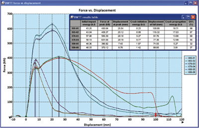 | アプリケーション | API 5L3に対応した鉄鋼材の破断衝撃試験。高衝撃エネルギーの製品試験 | |
