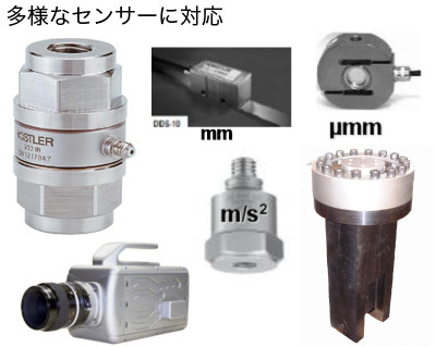 ◎荷重◎加速度◎時間◎変位◎応力◎ひずみ◎トルク◎角度◎温度◎光度◎音◎高速ビデオ など