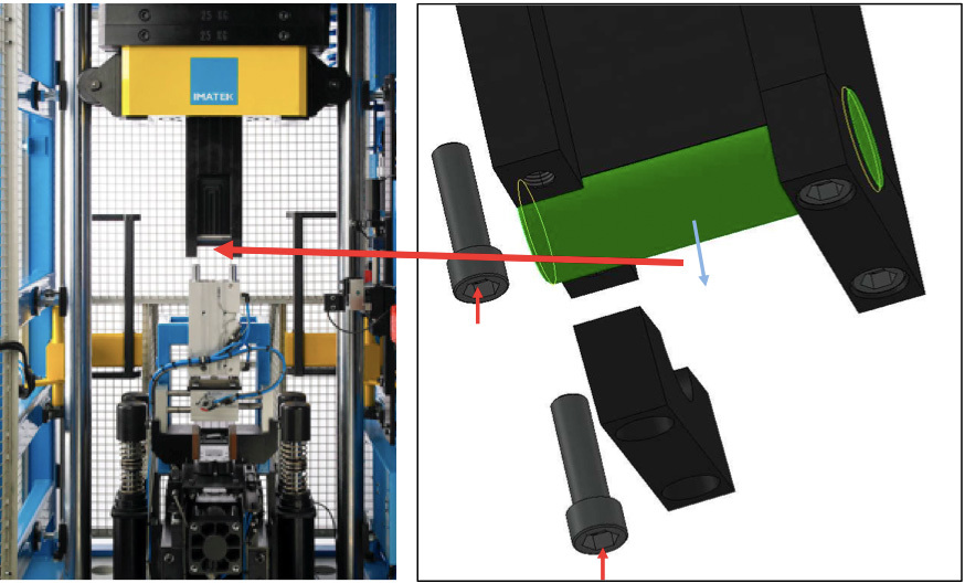 サンプルを搭載するアンビルのピン(2式)も交換式。こちらも交換目安は約1,000回と寿命が長く、交換時間は同じくは15分。ストレスなく長時間の試験が可能です。